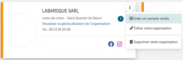 La liste des organisations affichées permet de vérifier leur existence dans votre base “Mes organisations professionnelles”