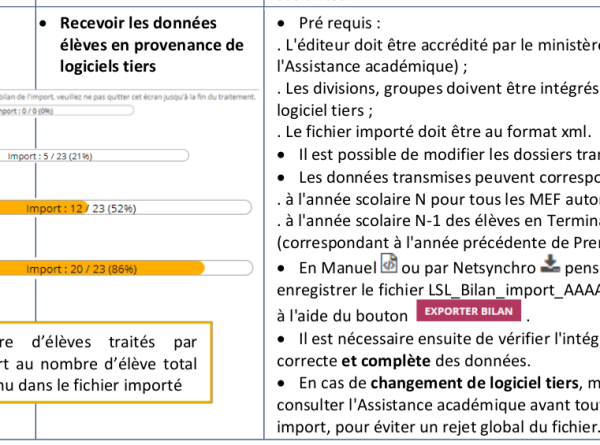 L'exportation des données élèves vers le Livret scolaire du lycée professionnel est réalisé par le biais d'un fichier informatique normalisé. Ce fichier est généré automatiquement par l'application CPRO en respectant les normes attendues.