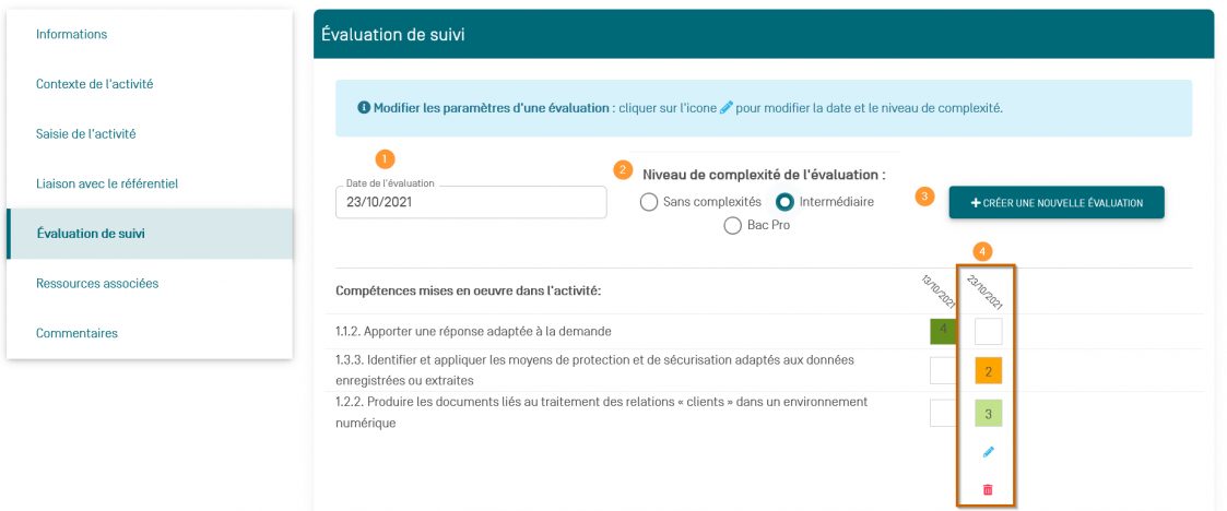 Une évaluation peut être supprimée ou modifiée dès lors qu'elle n'a pas été validée dans un bilan.