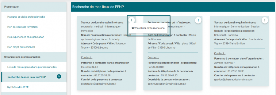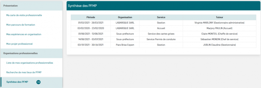 Cette rubrique offre une vue d'ensemble sur les organisations professionnelles rencontrées par l'apprenant. Ainsi, vous trouverez :