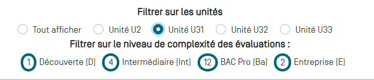 - l'affichage des compétences selon les unités professionnelles du diplôme,