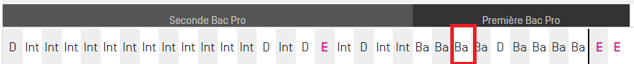- l'affichage des évaluations, selon leur nature (découverte, intermédiaire, Bac Pro, entreprise)